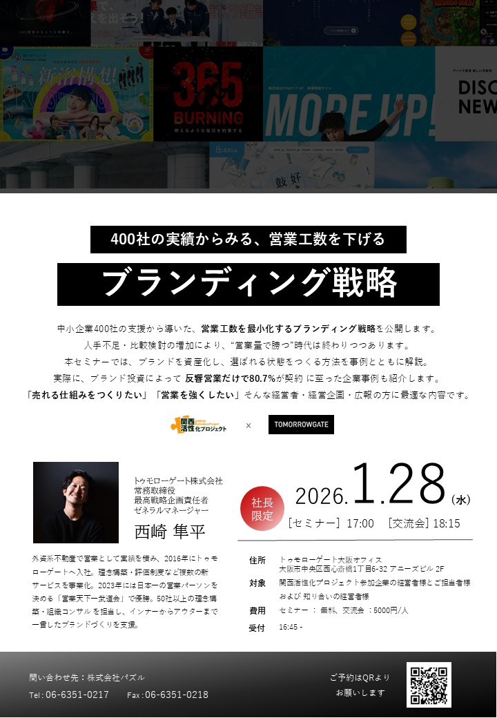 今回は、トゥモローゲート株式会社様と 「営業工数を最小化するブランディング戦略」というテー … 続きを読む 営業工数を最小化するブランディング戦略
